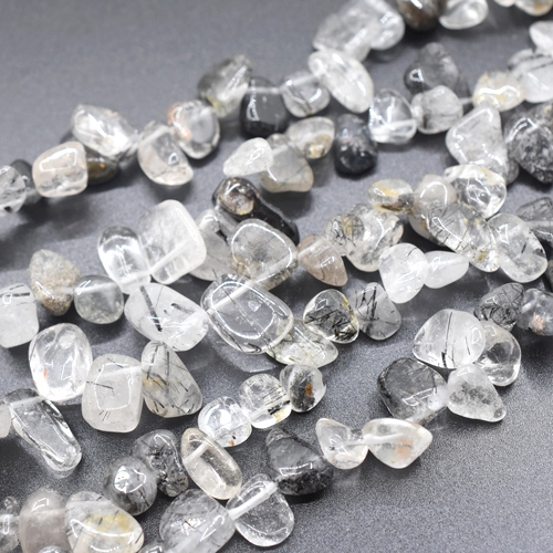天然石ビーズ ブラックルチルクォーツ さざれ石 タンブル 7-16mm(1連/38cm)