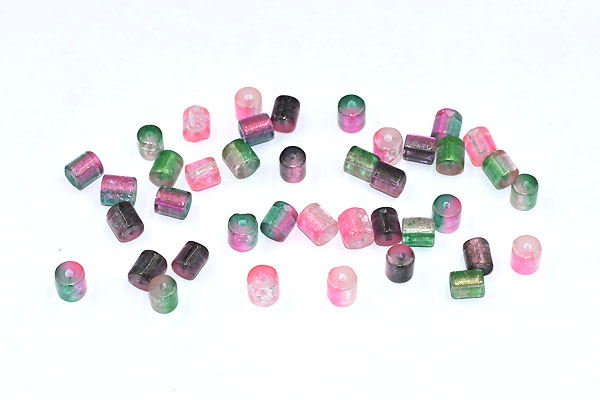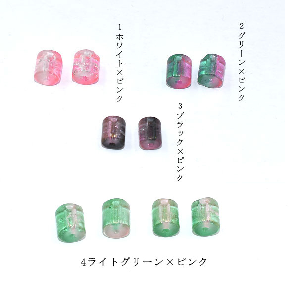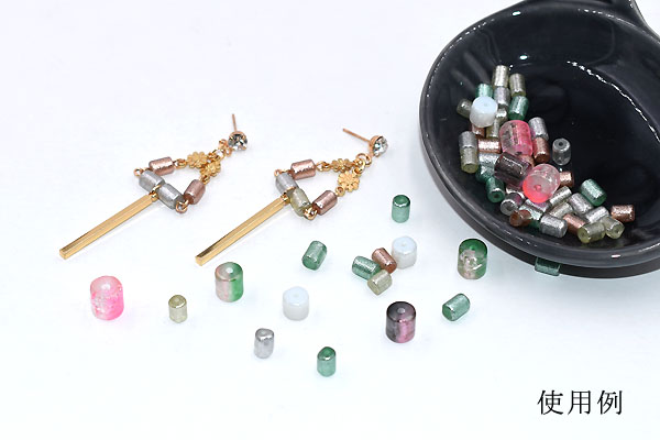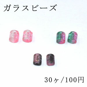 ガラスビーズ 円柱形 7×8mm ゴールドラメ 二色【30ヶ】