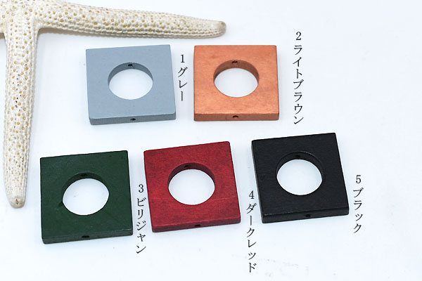 ウッドビーズ カラフル 中抜きスクエア 25×25mm【10ヶ】
