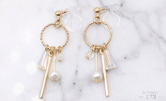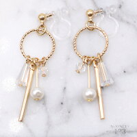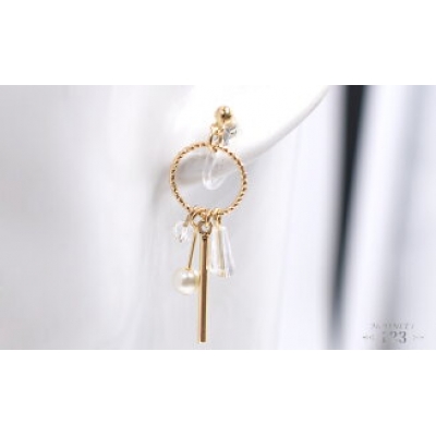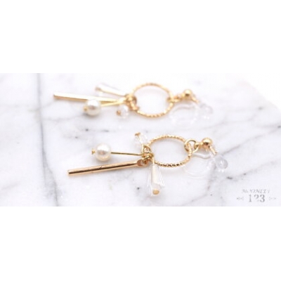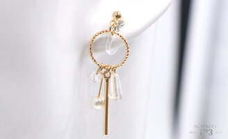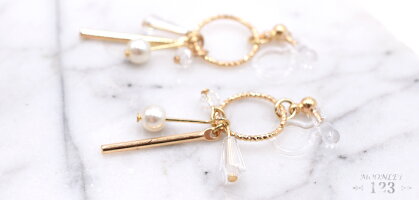 ガラス×パール×メタルスティックチャームの樹脂ノンホールピアス