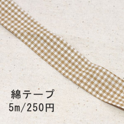 テープNo.198 綿テープ チェック 幅15mm イエロー×白【5m】