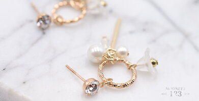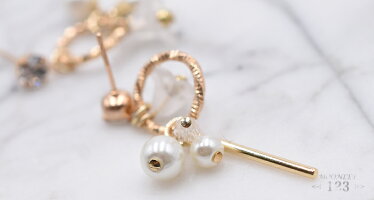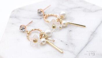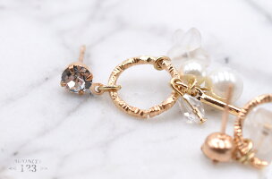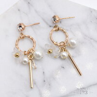 デザイン丸カン×パール×アクリル×ラインストーンバーチャームのピアス