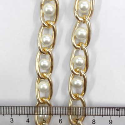 アルミニウムチェーン9 パール付き ゴールド 11mm幅 チェーンバッグ チェーンショルダー チェーンベルト 手芸用