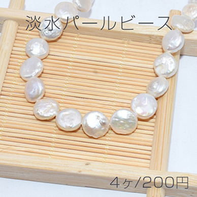 淡水パールビース 不規則コインNo.2 天然素材【4ヶ】