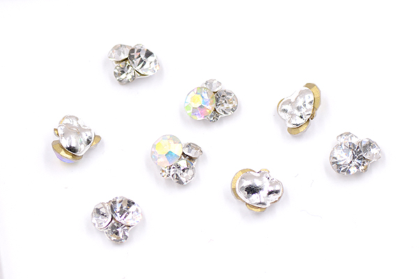 ネイルパーツ メタルパーツ 石付デザイン 7×8mm ロジウム【10ヶ】