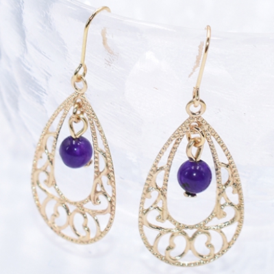 ピアス フックピアス 透かし雫×アクリルチャーム【1ペア】