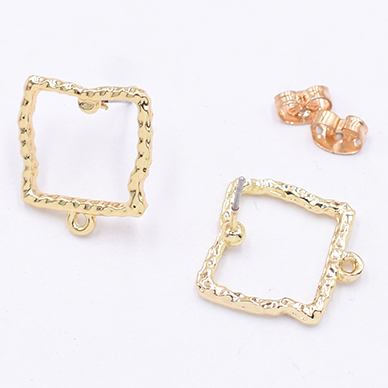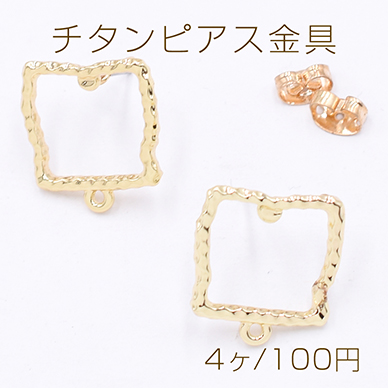 チタンピアス金具 変形四角 カン付き 16×18mm ゴールド【4ヶ】