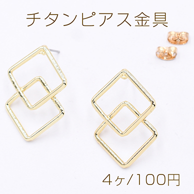 チタンピアス金具 2連菱形 20×28mm ゴールド【4ヶ】