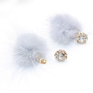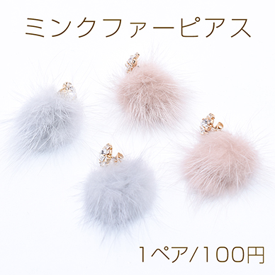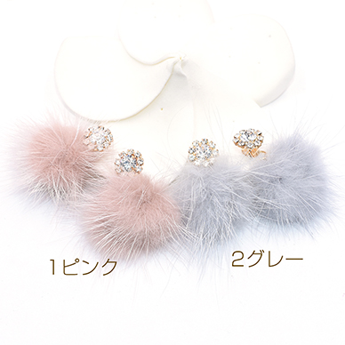ミンクファーピアス 3cm フラワーストーンピアス【1ペア】