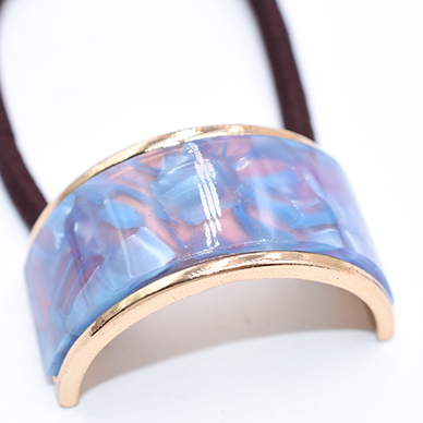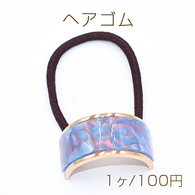 ヘアゴム カーブ長方形 アクリルプレート付き ヘアアクセサリー ブルー【1ヶ】
