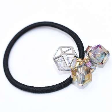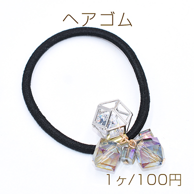 ヘアゴム デザイン ガラスチャーム付き ヘアアクセサリー カラー【1ヶ】