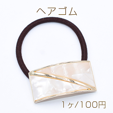 ヘアゴム カーブ長方形 アクリルプレート付き ヘアアクセサリー ホワイト【1ヶ】