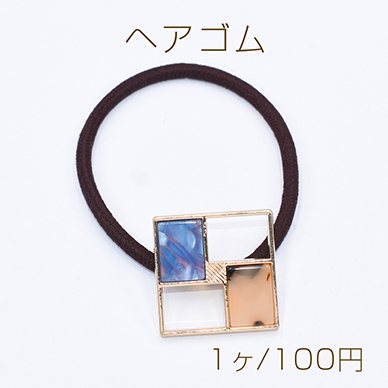ヘアゴム 正方形 アクリルプレート付き ヘアアクセサリー べっ甲風【1ヶ】