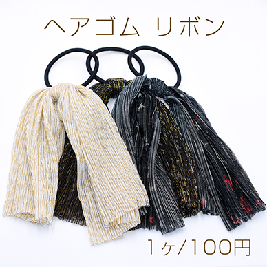 ヘアゴム リボン ヘアアクセサリー ゴールドワイヤー柄【1ヶ】