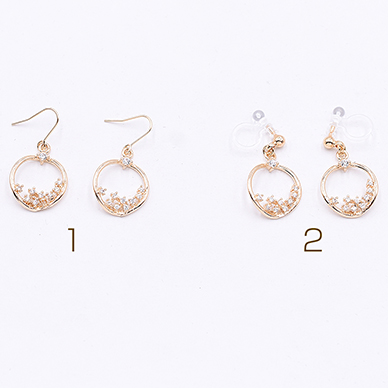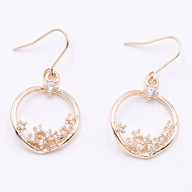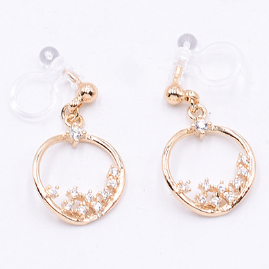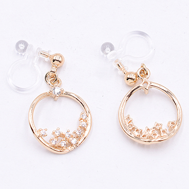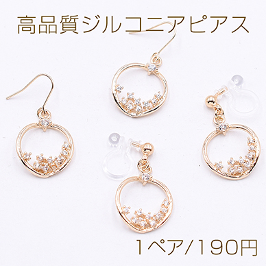 高品質ジルコニアピアス/イヤリング 不規則サークルチャーム ゴールド/クリスタル