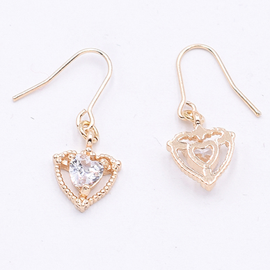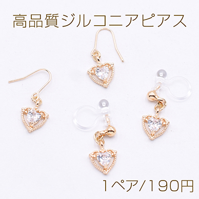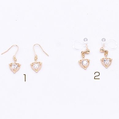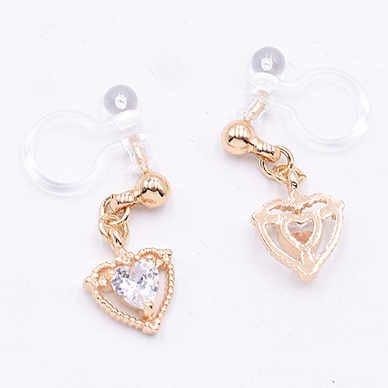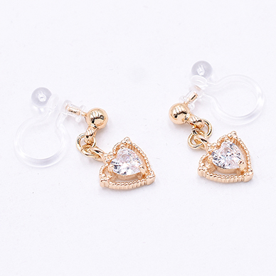 高品質ジルコニアピアス/イヤリング ハートチャーム ゴールド/クリスタル