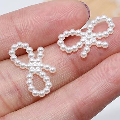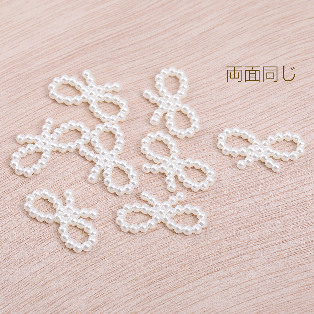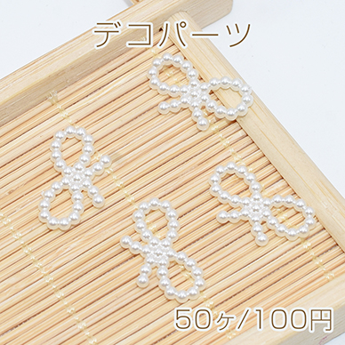 デコパーツ アクリル パール風 リボン型 10×18mm レジン封入【50ヶ】
