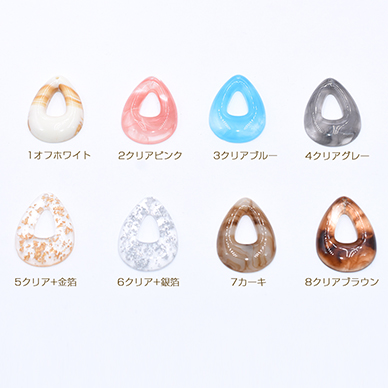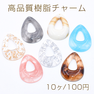 高品質樹脂チャーム 抜き雫 1穴 26×36mm 全8色【10ヶ】