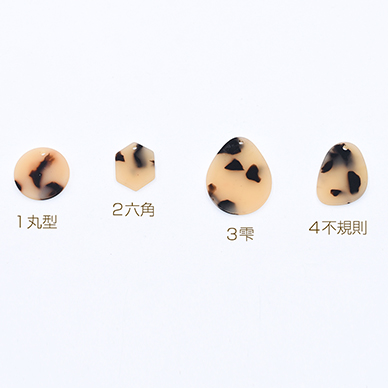 サイズ:【1丸型→1穴】約18mm 【2六角→1穴】約13×17mm 【3雫→1穴】約22×28mm 【4不規則→1穴】約16×22mm
