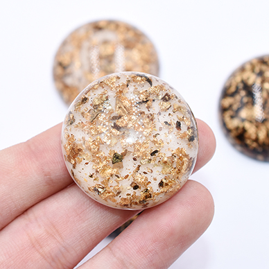 高品質デコパーツ 樹脂パーツ 半円 30mm 金箔入り【10ヶ】