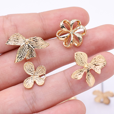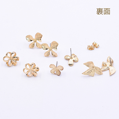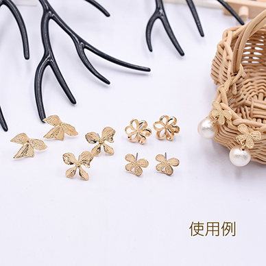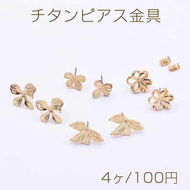 チタンピアス金具 フラワー 蝶 リボン ゴールド【4ヶ】