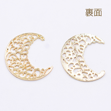 チャームパーツ 透かし月型 28×32mm ゴールド【10ヶ】