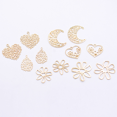 チャームパーツ 透かし雫の枝葉 18×28mm ゴールド【10ヶ】
