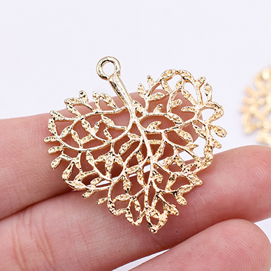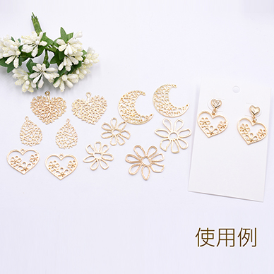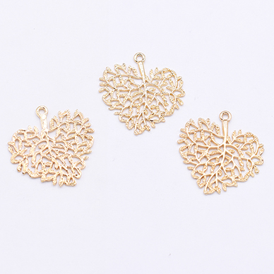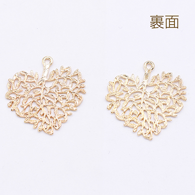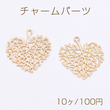 チャームパーツ 透かしハートの枝葉 30×32mm ゴールド【10ヶ】