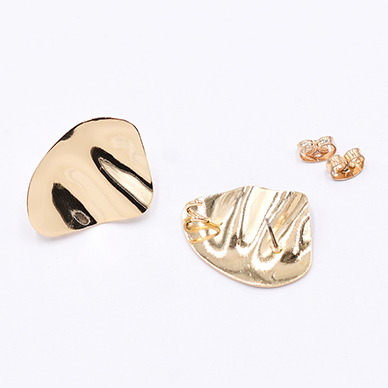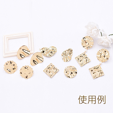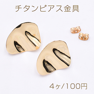 チタンピアス金具 波型不規則 カン付き 19×24mm ゴールド【4ヶ】