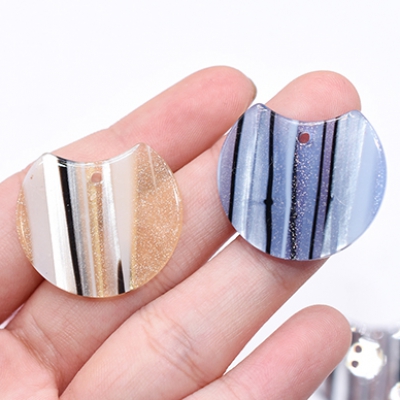 数量限定 在庫一掃半額セール! アクリルプレート 変形丸型1穴 24×27mm ストライプ柄 シルバーラメ入り【10ヶ】