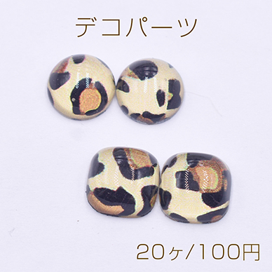 デコパーツ アクリルパーツ 半円&正方形 10mm レオパード柄【20ヶ】