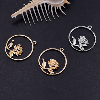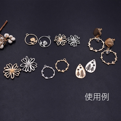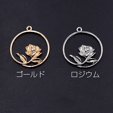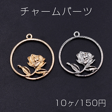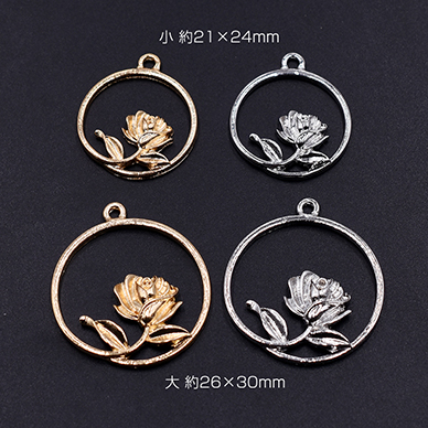 チャームパーツ サークル 花枝付き 1カン 26×30mm【10ヶ】