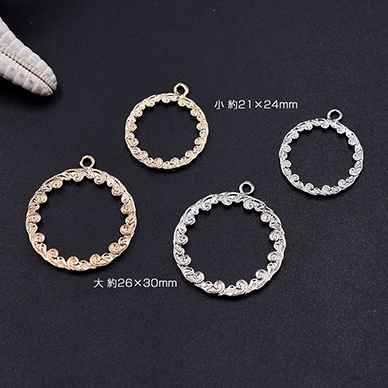 チャームパーツ サークル レース付き 1カン 21×24mm【10ヶ】