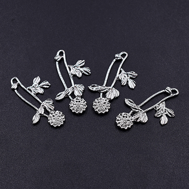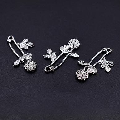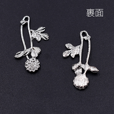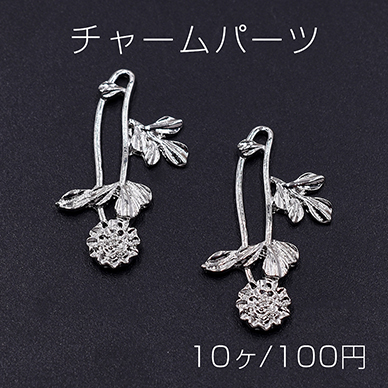 チャームパーツ 花枝 18×28mm ロジウム【10ヶ】