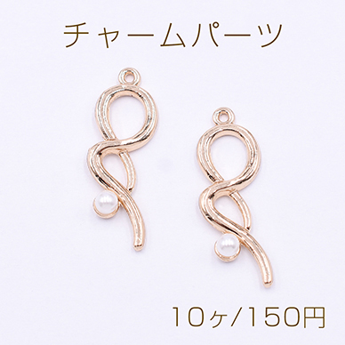 チャームパーツ 8字型 パール付き 11×32mm ゴールド【10ヶ】