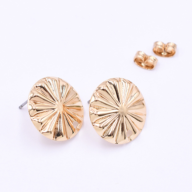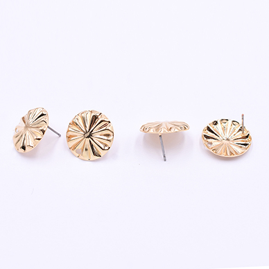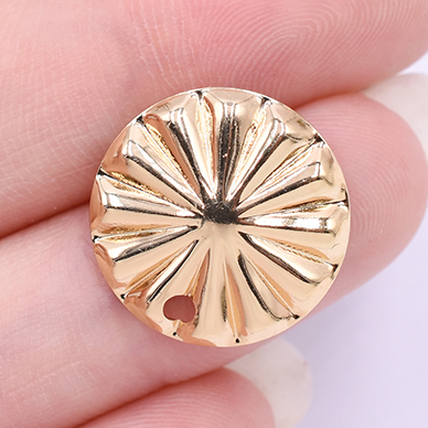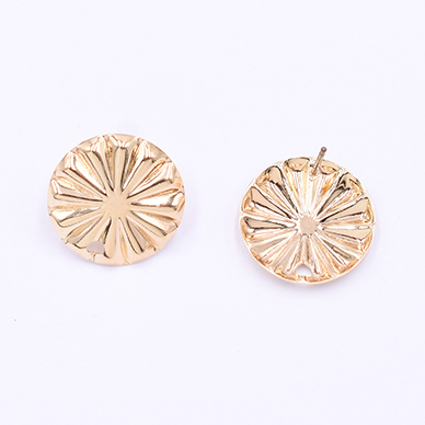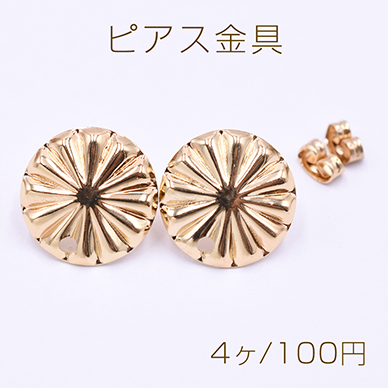 ピアス金具 花模様入り丸型 1穴 17mm ゴールド【4ヶ】