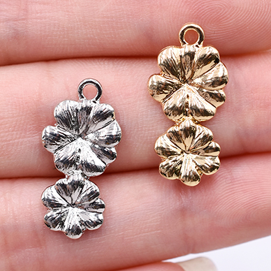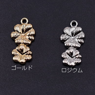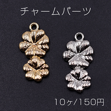 チャームパーツ 四つ葉 クローバー 2連 12×23mm【10ヶ】