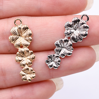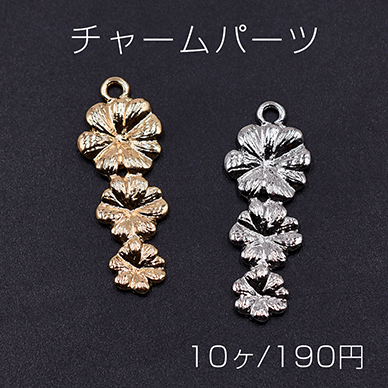 チャームパーツ 四つ葉 クローバー 3連 12×30mm【10ヶ】