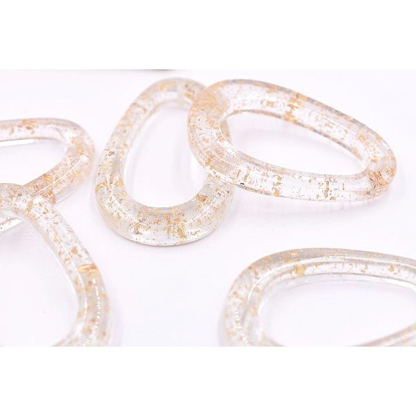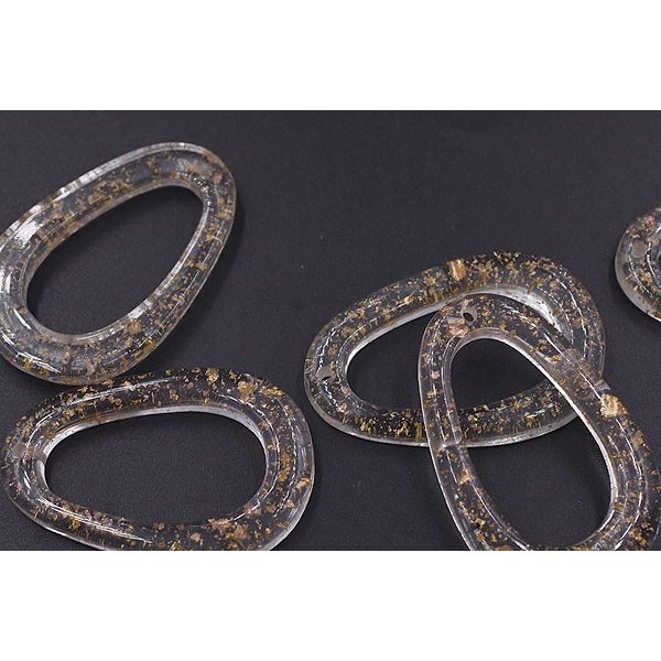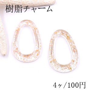 樹脂チャーム 雫フレーム 1穴 32×49mm クリア 金箔入り【4ヶ】