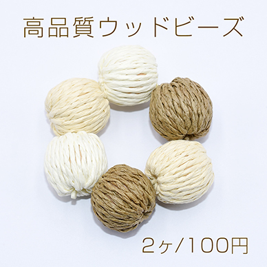 高品質ウッドビーズ 丸玉 19mm チャームパーツ【2ヶ】