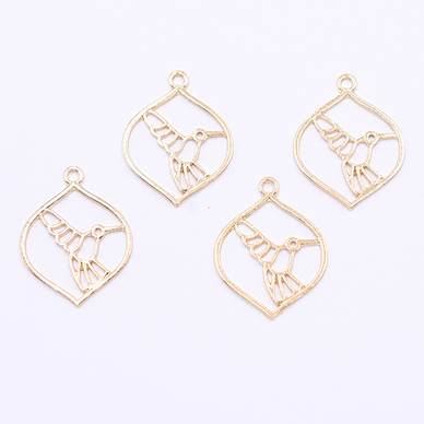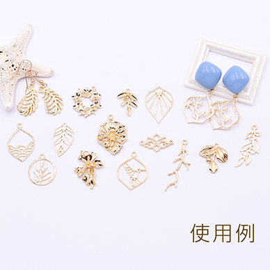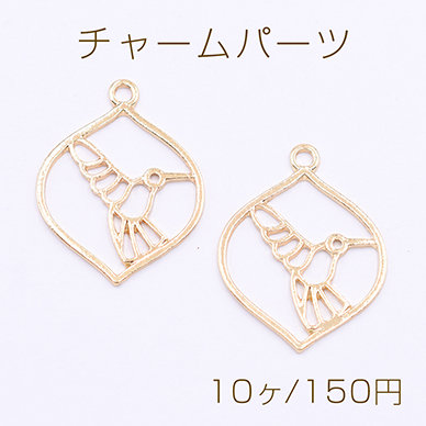 チャームパーツ リーフフレーム 鳥付き 22×28mm ゴールド【10ヶ】