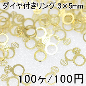 ネイルパーツ ダイヤ付きリング メタルパーツ ゴールド アソートセット 3×5mm(100ヶ) 【Nail Parts】