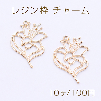 レジン枠 チャーム 蓮 23×32mm ゴールド【10ヶ】