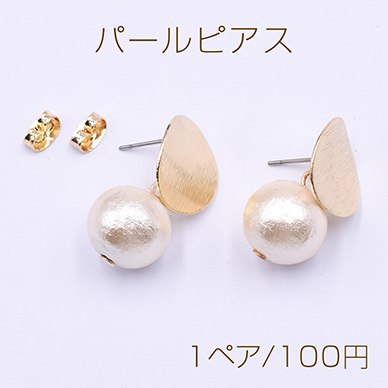 パールピアス カーブラウンド 15mm ゴールド【1ペア】