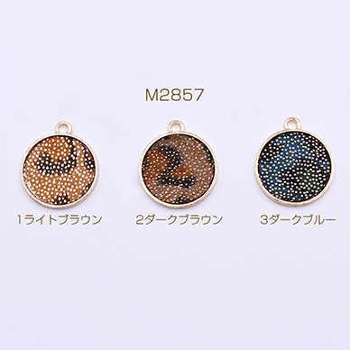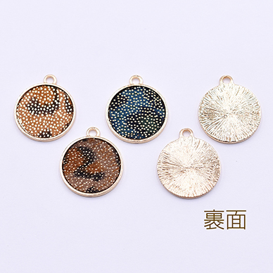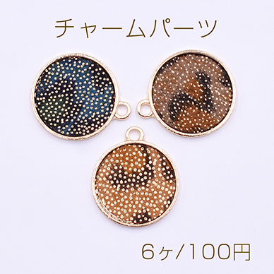 チャームパーツ 丸型 18×21mm PU貼り レオパード柄【6ヶ】