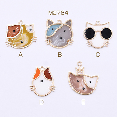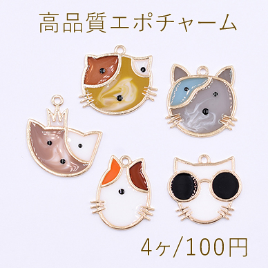 高品質エポチャーム 猫の顔 全5種 ゴールド【4ヶ】