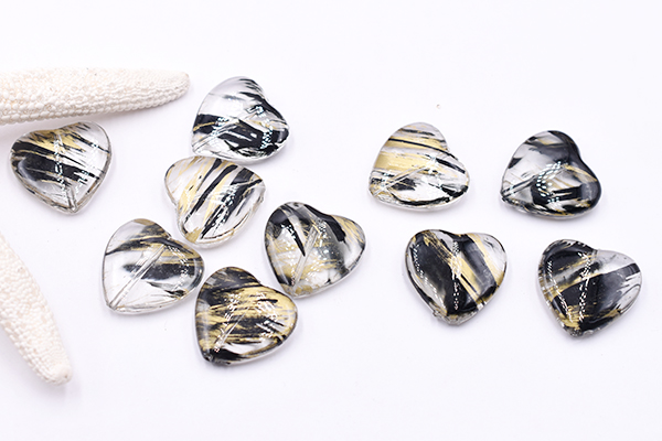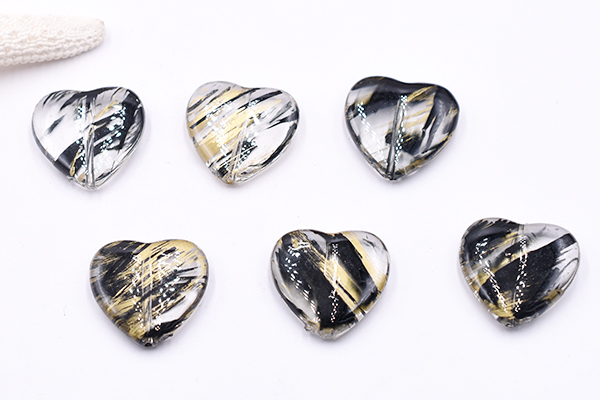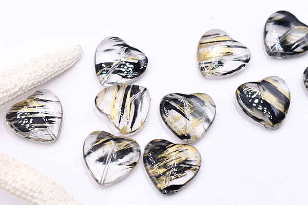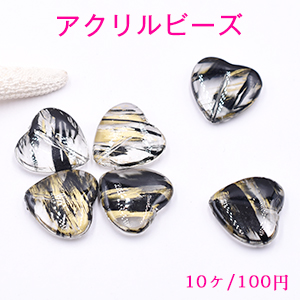 アクリルビーズ ハート 22×23mm クリア ブラック/ゴールド【10ヶ】