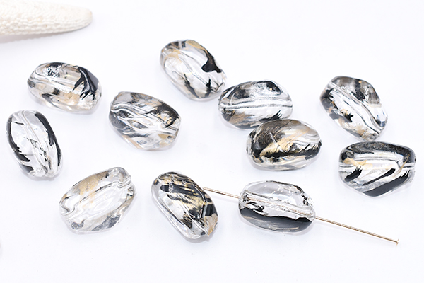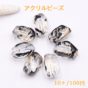 アクリルビーズ 不規則 13×21mm クリア ブラック/ゴールド【10ヶ】