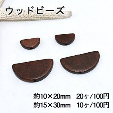 ウッドビーズ ナチュラル 半円 ダークブラウン