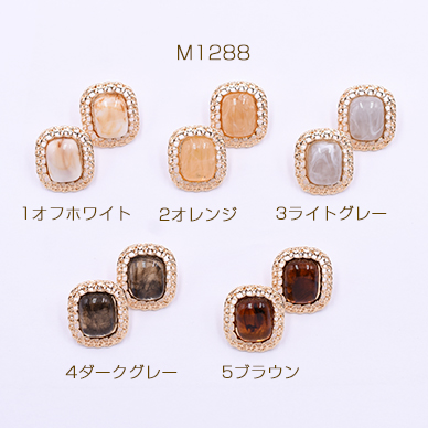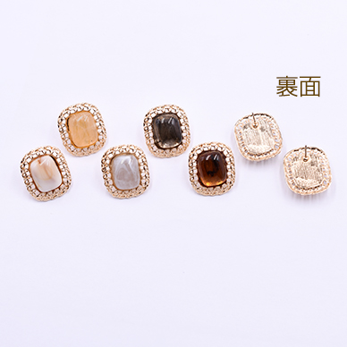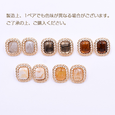 ピアス金具 透かし長方形 樹脂貼り 20×23mm ゴールド【4ヶ】
